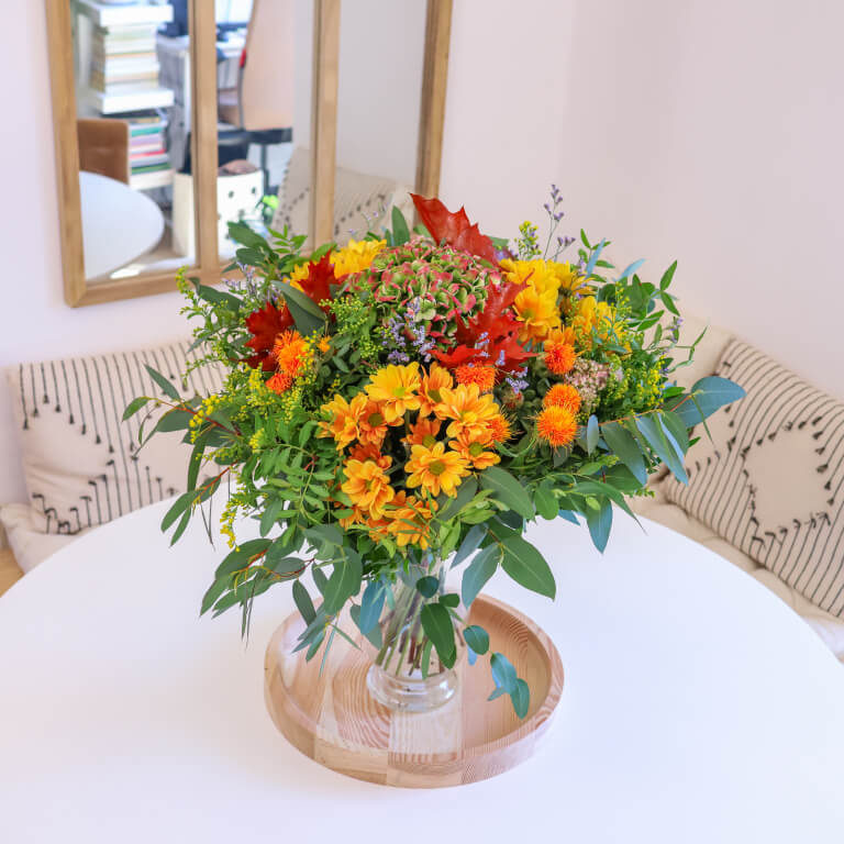 Si además de las plantas te gusta decorar tu hogar con flores, tenemos una selección otoñal para dar calidez a tu hogar con flores y verdes de todas las tonalidades otoñales que ,estamos seguros, te va n a enamorar