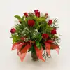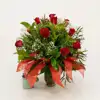 Personalitza el teu gerro de vidre amb roses del color que triïs a partir de 15 unitats acompanyat de verds decoratius Jarrón de cristal con 15 rosas del color que más te guste, perfecto para aniversarios, celebraciones,nacimientos....
