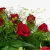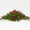 Elegante cojín funerario creado con bonitas rosas cerradas de color rojo. Producto disponible en medida pequeña y grande
