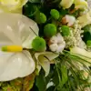 Bonita corona funeraria con flores de alta calidad blancas.