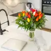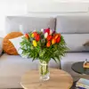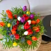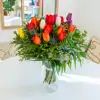 Experimenta la pura armonía entre color, aroma y forma con nuestra composición de 20 tulipanes, 5 tallos de erengium y verdes decorativos, este ramo es un espectáculo sensorial que combina tonos desde rojos vibrantes hasta rosas suaves, creando una armonía visual cautivadora.Inspirado en la magia de las flores que enamoran y representan la esencia misma de la vida, este bonito ramo rebosa color y movimiento. Este ramo es una experiencia mágica que transforma cualquier espacio en un escenario vibrante de la naturaleza.