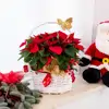 ¡Felicita la Navidad con nuestras hermosas Ponsettias! Sorprende con esta composición de ponsettias rojas ; adornada con elementos decorativos y con base de mimbre incluida. Una composición tradicional que siempre gusta, ¡envíasela ya!En 4 tamaños distintos a elegir.