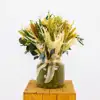 Si tu casa es de estilo neutro este jarrón de flor seca en tonos tostados y detalles de verde será tu mejor elección. Las piñas, el trigo y su combinación de verdes silvestres son perfectos para una sensación de tranquilidad y armonía para tu hogar.