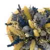 Klin es una composición de flor seca en tonos amarillos y azules, el conjunto se encuentra en una base de madera con forma de corazón. Es el regalo perfecto para tener un detalle que durará por mucho tiempo.