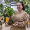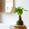 La suerte y la belleza se unen en este kokedama de Pachira, ideal para añadir un toque de prosperidad a tu espacio.