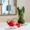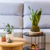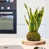 La robusta Sansiviera encuentra su hogar perfecto en una kokedama, añadiendo un toque de serenidad y frescura.