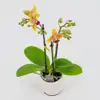 Incluye tiesto. Descubre la versión miniatura de la Orquídea phalaenopsis. Es chiquitina pero matona, ya que en belleza, no tiene nada que envidiar a su hermana mayor. Sus flores son más pequeñas y compactas que las de tamaño habitual. Recuerda que sus raíces necesitan luz del sol, así que busca un lugar en la casa donde se sientan cómodas.