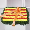 Plafón funerario elaborado con claveles rojos y amarillos para crear la bandera de Catalunya. Está en 3 medidas a elegir; puedes elegir entre un plafón de 50cm x 50cm, uno de 70cm x 50cm o uno de 100cm x 50cm.