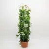 Conocida también como Jazmín de Chile todo y que su origen se encuentra en Brasil. Planta trepadora que nos regala su floración durante los meses de primavera y verano.
