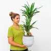 Planta de interior muy facil de cuidar, la Dracaena deremensis necesita luz intensa pero nunca sol directo. Humedad relativa en época de crecimiento. (Tiesto no incluido) Originaria de las zonas tropicales de África, es una de las plantas de interior más rústica y facil de cuidar. Se adapta facilmente a ambientes seco y poco iluminados. Sus hojas son verdes y con líneas blancas. Es de crecimiento lento, aunque con el tiempo puede llegar a alcanzar los 2 metros de altura.