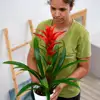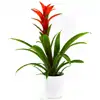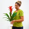 Plantas que producen brácteas de intenso colorido que duran hasta dos meses. (Tiesto no incluido) La Guzmania es la Bromélia con la flor más llamativa de toda las Bromaliáceas. Originaria de zonas tropicales de América, bosque húmedos de la India y de Sudamérica. Hojas verdes que se disponen en roseta y que presentan el característico depósito de agua como en la gran mayoría de las Bromélias. Sus inflorescencias aparecen en forma vertical y que pueden ser de muchos colores según la variedad, desde rojos, anaranjados, lilas, amarillos etc...Este tallo central presenta unas brácteas que entre ellas aparece la verdadera flor, que de por sí son insignificantes. Pasada la floración, el tallo central y la roseta de hojas tienden a desaparecer para dar paso a los hijos que serán los que darán floraciones nuevamente.