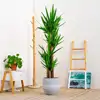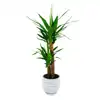 A su inconfundible estampa de criatura del desierto se le suma la alta tolerancia a las heladas y al sol directo. Resistente a la sequedad e inmune a las plagas (Tiesto no incluido) Planta de exterior o de interior. Originaria de Centroamérica es un ejemplar que plantado en el suelo puede llegar a medir 10 metros. Soporta muy bien el frío y el sol directo. Tiene hojas largas y puntiagudas que a medida que la planta va creciendo se van secando y dejan el tronco al descubierto. Cuando llega a ser una espécie adulta hace una floración generalmente de color marfil que puede ser erecta o pendula. Al ser una planta originaria de zonas áridas, están muy capacitadas para vivir con escacez de agua.