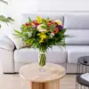 Si quieres sorprender a mamá con un regalo que la haga sentir especial en su día, nuestro ramo de flores primaveral es la elección perfecta. Este impresionante arreglo incluye una hermosa rosa roja, 7 vibrantes gerberas, margaritas variadas, 4 solidagos, 3 clavellinas y medio pomo de statice para un toque dulce. ¡Una explosión de color y alegría!