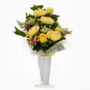 Ramo artificial para cementerio en cono de plástico blanco.De rosas y peonias