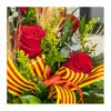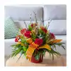 ¡Celebra Sant Jordi con nuestra hermosa base de cerámica roja adornada con 10 rosas rojas, solidago, espigas y gatell! Esta impresionante combinación de flores y follaje está cuidadosamente dispuesta para crear un regalo elegante y lleno de significado. Las rosas rojas simbolizan el amor y la pasión, mientras que el solidago y las espigas agregan un toque de frescura y vitalidad. Presentado en una base de cerámica roja, este arreglo es una expresión perfecta de amor y admiración en Sant Jordi. ¡Sorprende a tu ser querido con este regalo único y encantador!